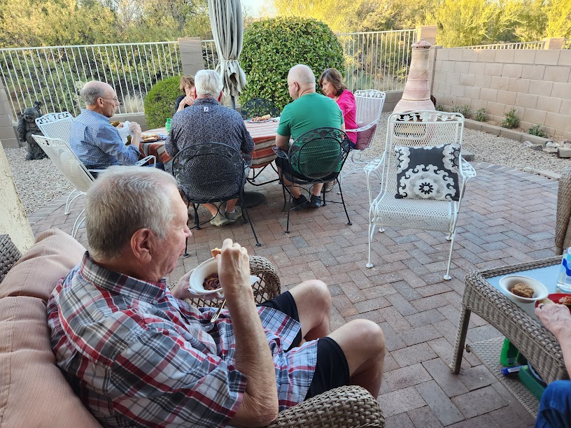On November 5th we hosted a pot-luck Texas Hold ‘Em poker party for a group of long-time friends. We ate outside on the back patio then went in for the card game. Our poker parties go back many many years. As couples, we used to meet regularly. When covid hit the parties became sporadic but we still met on occasion. In total, there are seventeen of us. Not everyone makes every party, but we try. The ladies of the group also gather monthly for dinner at a restaurant to celebrate a birthday. When there is no birthday that month we meet anyway to celebrate friendship. In October there was a garden party hosted by a couple who built a greenhouse during the pandemic. The incentive for that gathering was to show all the beautiful plants and vegetables they propagated during the last two years. Everyone left with a small basket of fresh veggies to make soup at home.