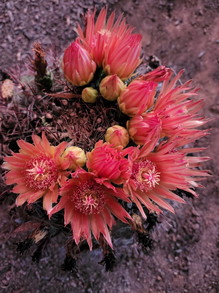 Late Summer 2024. This is the best time of all in the desert when luxurious rain drenches the parched earth. Rivers and washes flow. The hills and mountainsides turn dark green. In summer most places in the U.S. dry out, the earth turns yellow and brown. But Tucson blooms. The delicate trumpet flowers of Texas Rangers flaunt various shades from the soft lavender of a morning sunrise to deep purple vibrations of a shiny eggplant. Succulent plants flower, pink, orange, red, and white.
