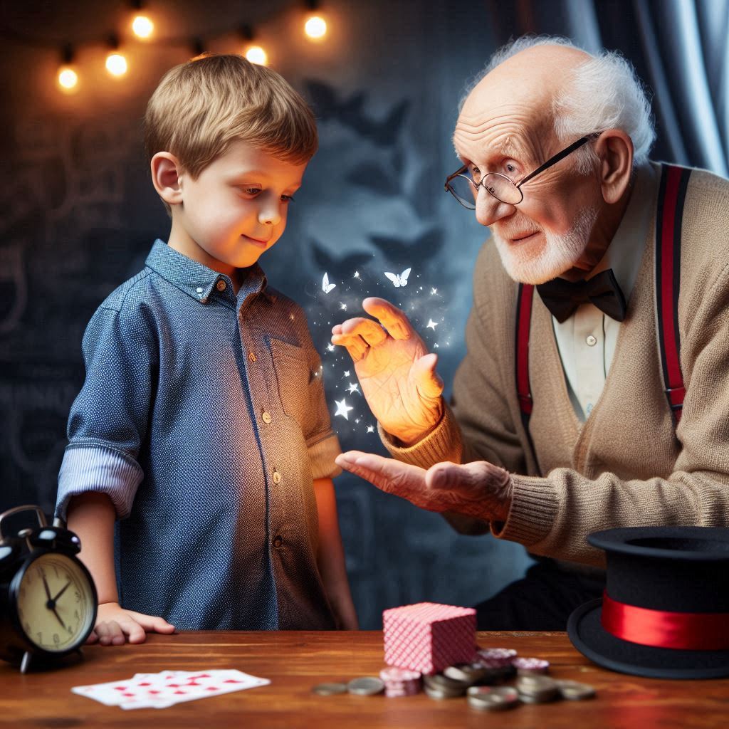 Merlyn met Bobby three more times that month, always in the downstairs common room in their cozy nook. Bobby shared some of his magic tricks and Merlyn showed him more. Merlyn practiced magic in the common room as he waited for Bobby. Other residents gathered to watch his magical exhibitions. Merlyn began to make friends with his neighbors. His outlook improved, his temper leveled out and his old charm returned.