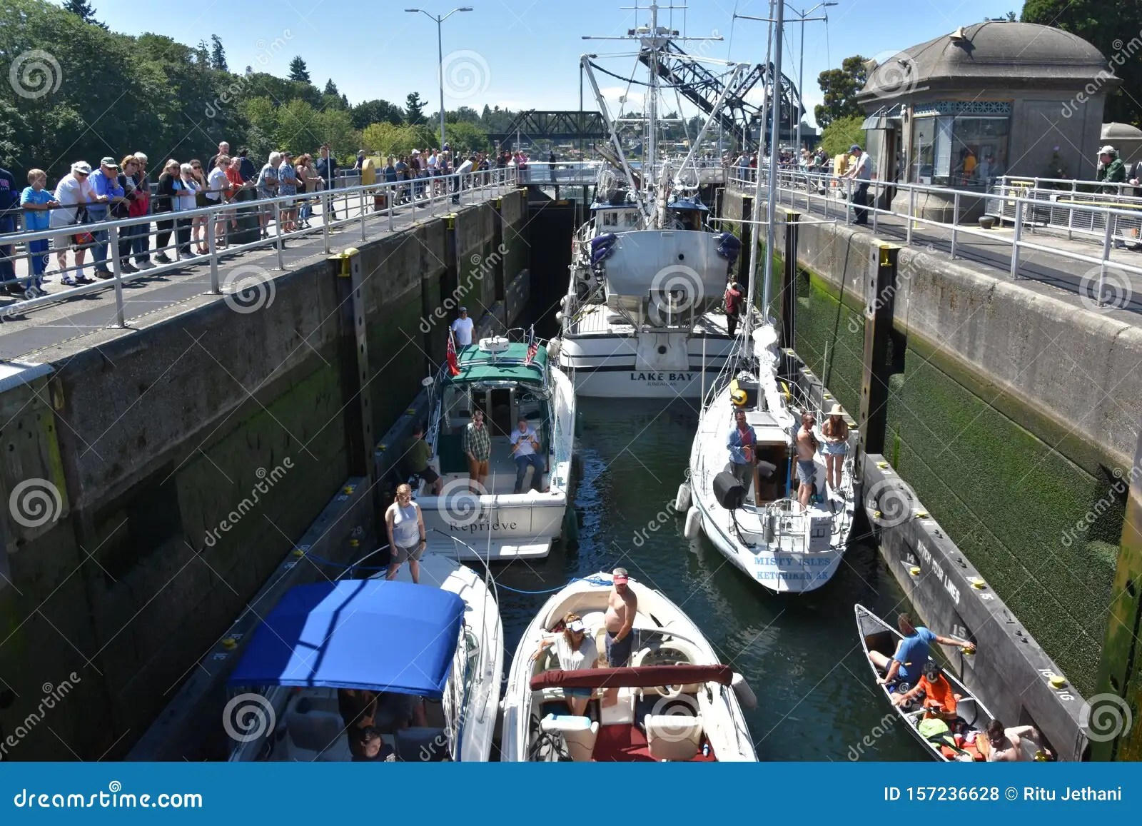 After Capitol Hill, we go north and a little west to Fremont, another of my favorite places. It is bordered on the south by the ship canal that was dug in 1911 to connect Lake Union and Lake Washington to Puget Sound. West of Fremont in the Ballard area are Chittenden canal locks that you have to take your boat through to get from the fresh water lake to the salt water Sound and visa versa. We took our sailboat through a few times. It is an interesting but nerve-racking experience.