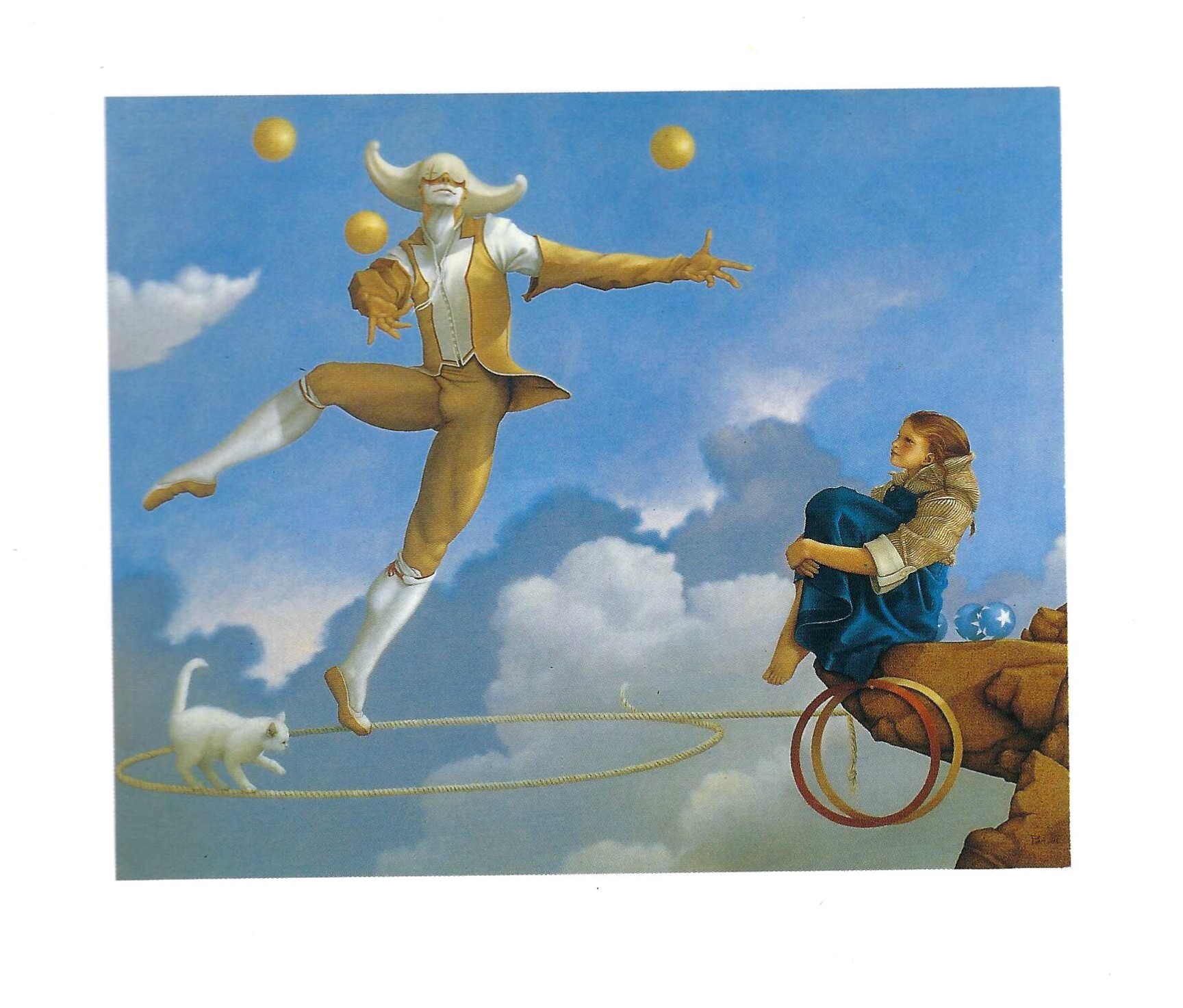 One of my favorites is a print of The Juggler by Michael Parks that is on the wall of my office. Our writing critique group had a prompt to write about a piece of artwork or a photo in our house, and what it means to us. This is a poem about The Juggler.